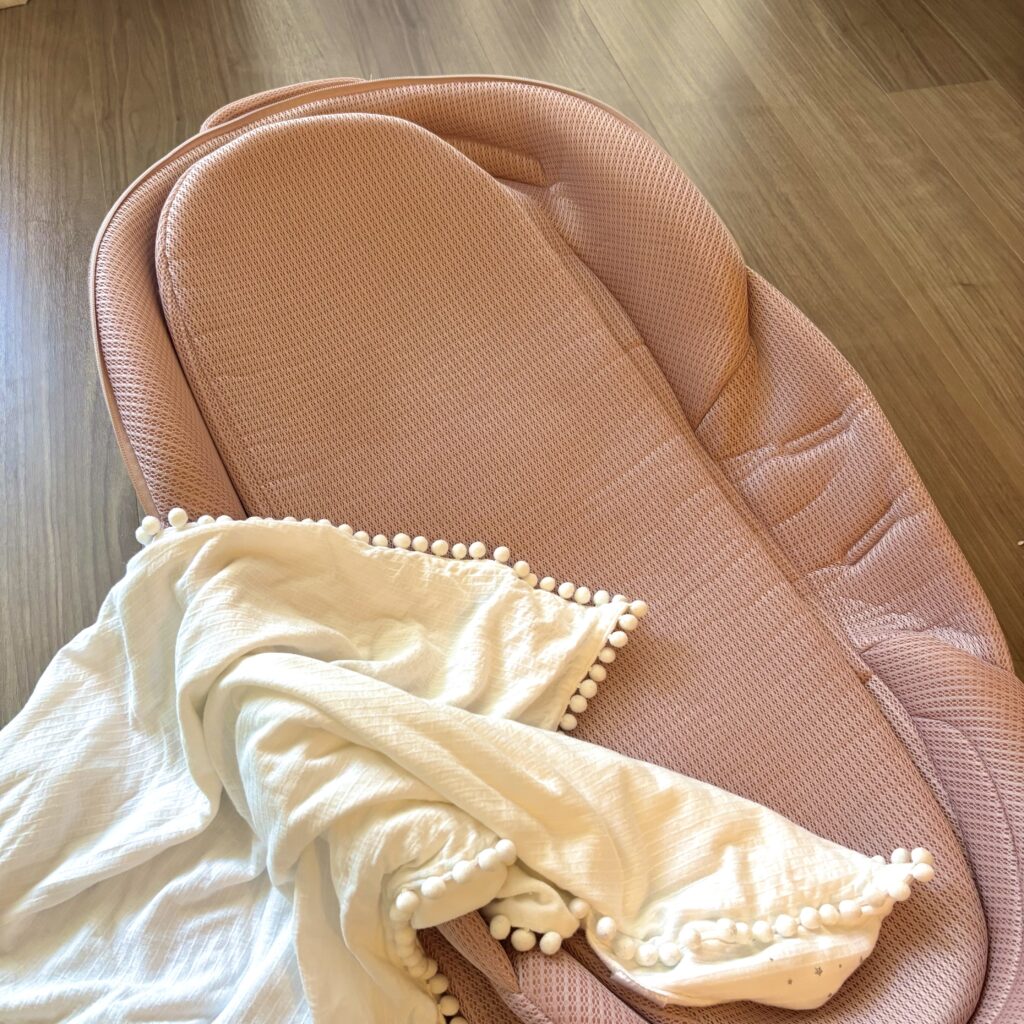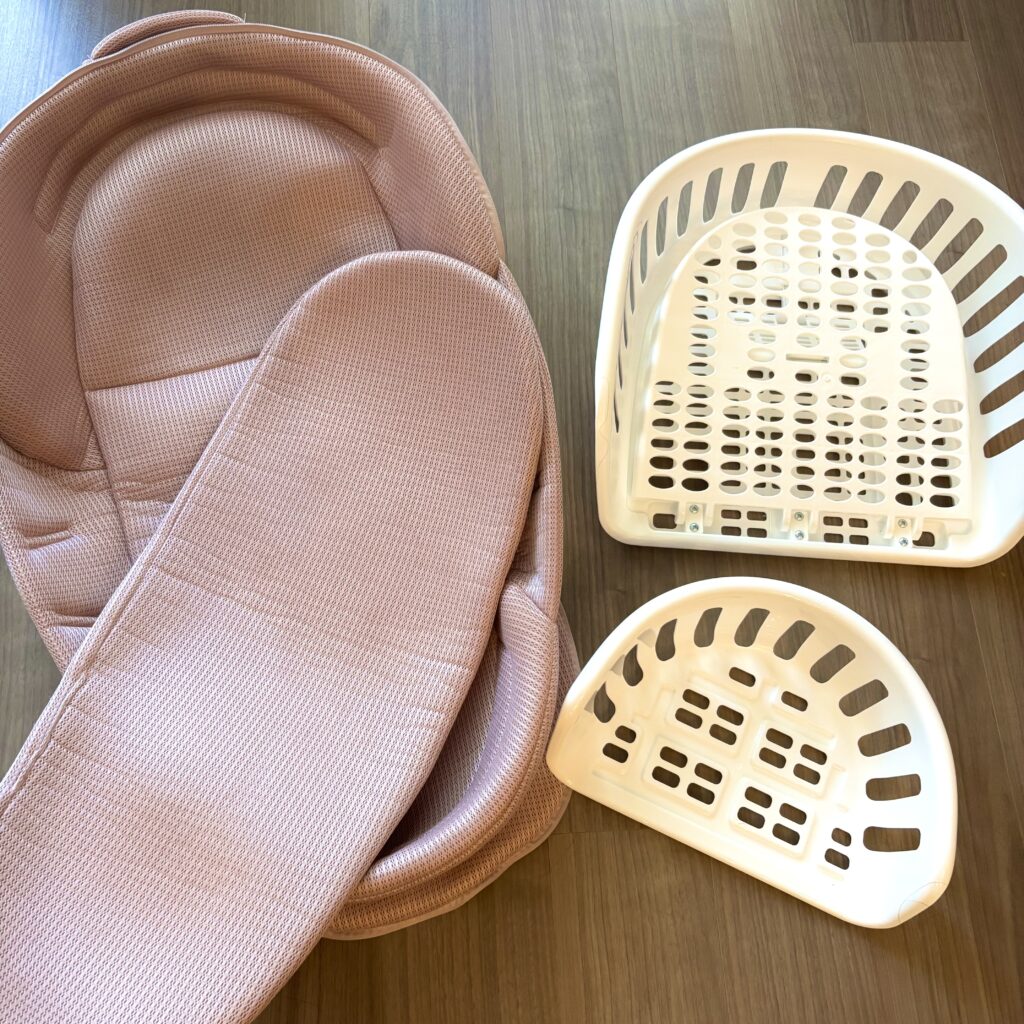 そこでこのネオママイズムのベッドインベッドに着替えるお洋服をセットしておくと保湿が完了したベビーちゃんをポンとおけて、そのままリビングにも連れていけるので超便利!